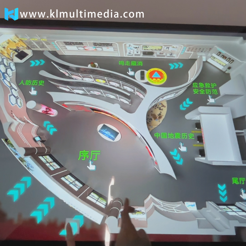 Puede integrarlo con nuestro sistema de interacción táctil e inmersivo, lo que permite a los usuarios operar el contenido de la pantalla en una pantalla táctil. La sala inmersiva proporciona una experiencia realista de la sensación espacial dentro de la galería.